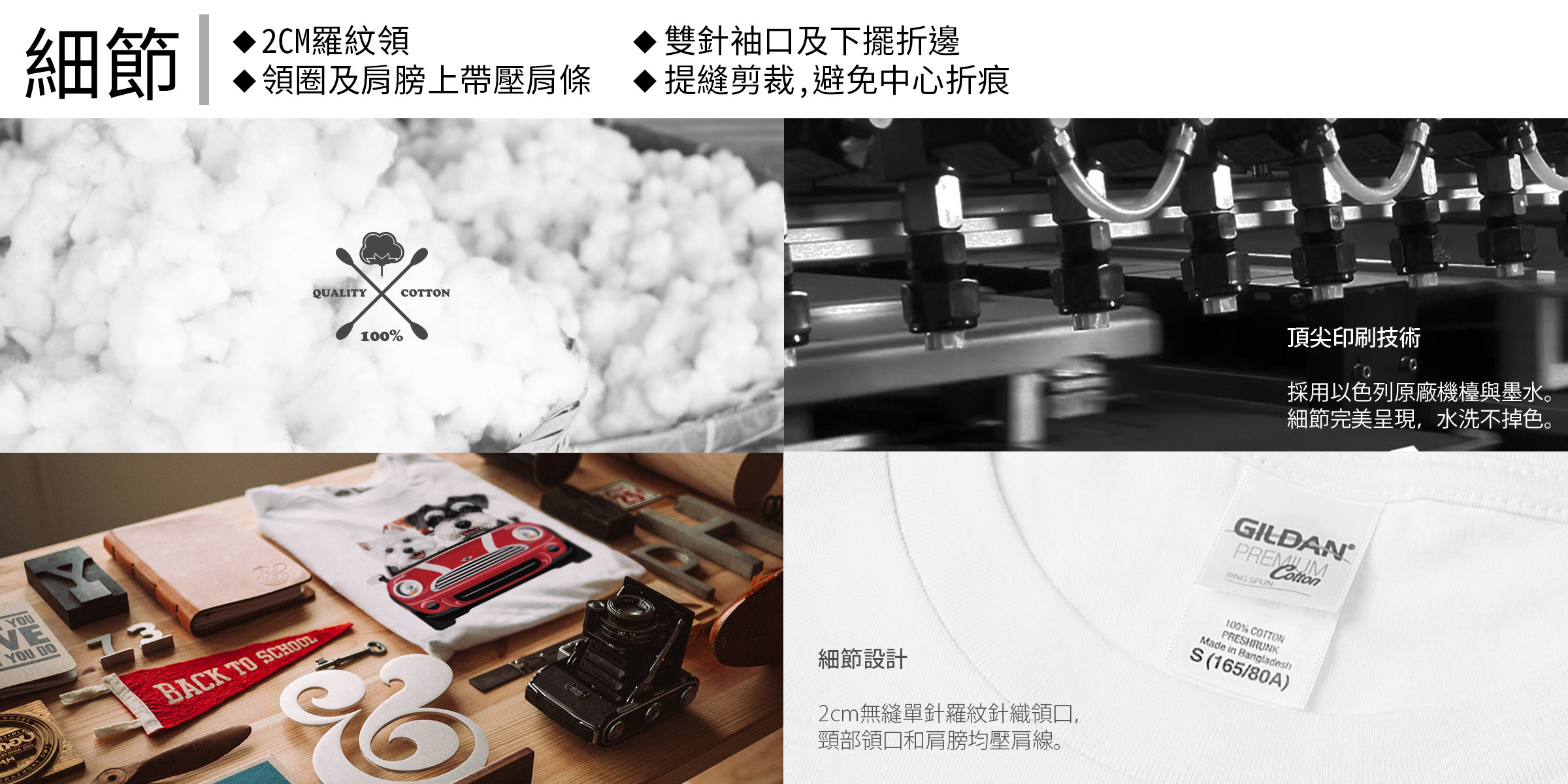 使用國際T恤大廠Gildan吉爾登正版,2mm單針領口
