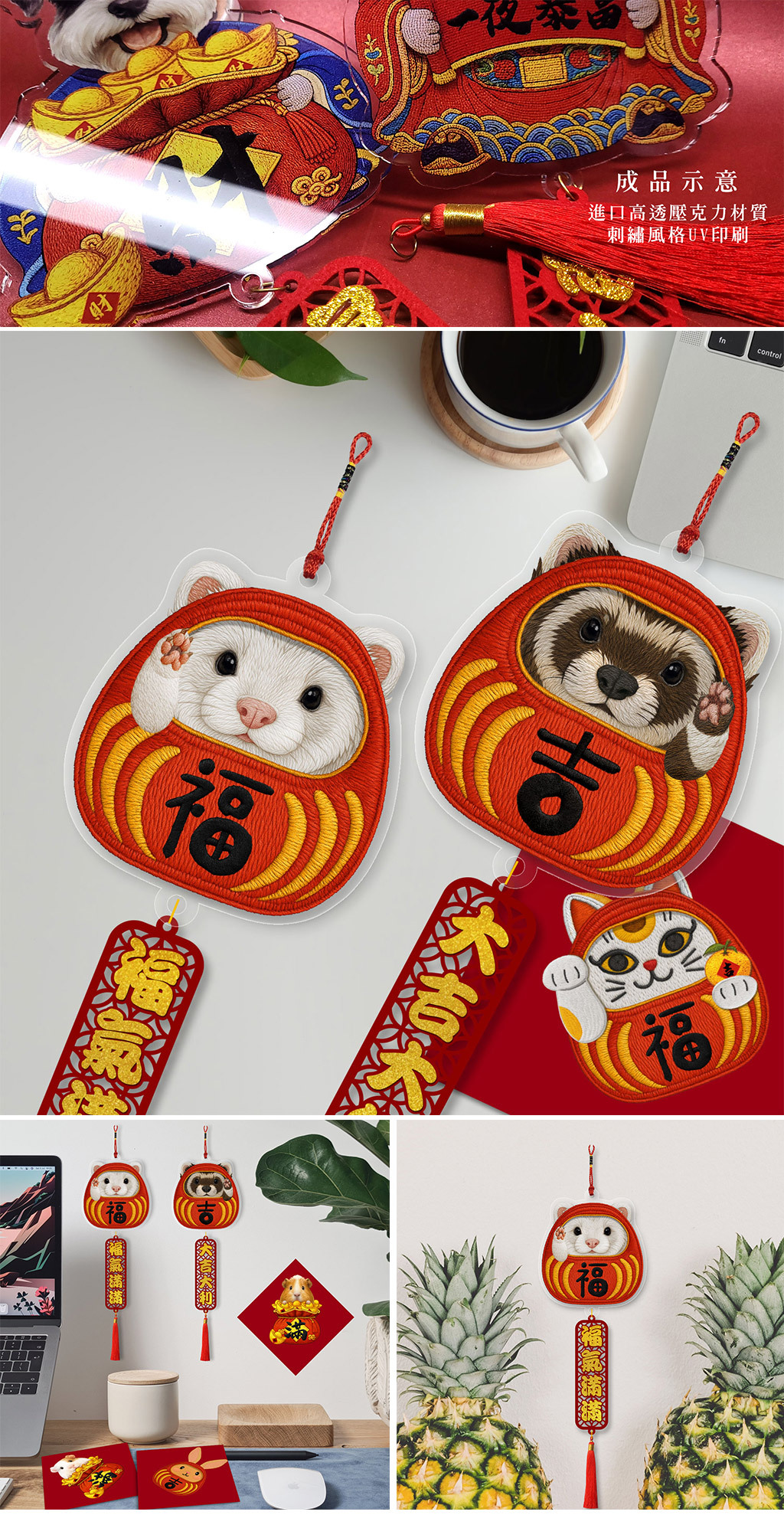 寵物貂年節刺繡風格掛飾