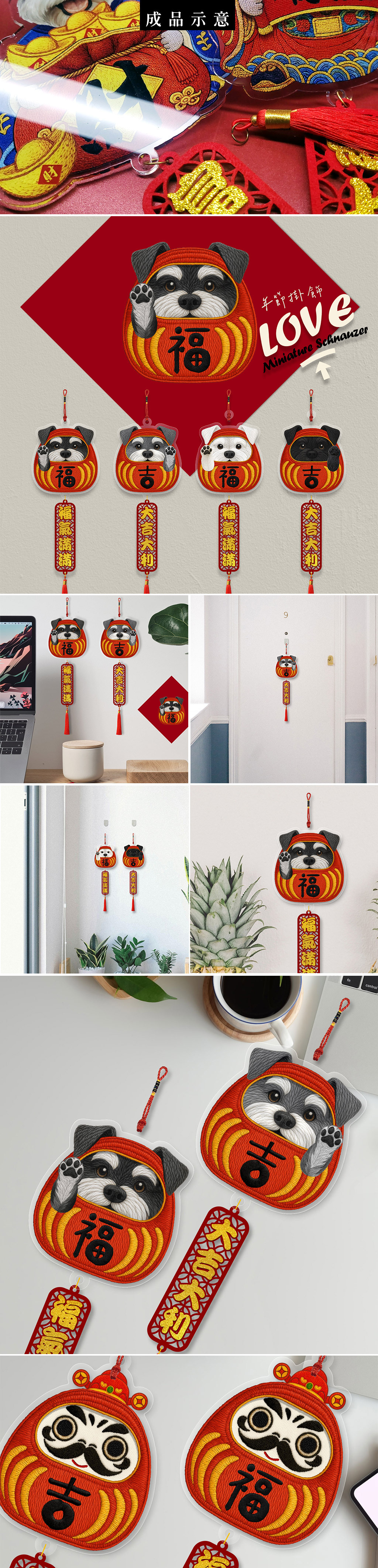 雪納瑞年節刺繡風格掛飾