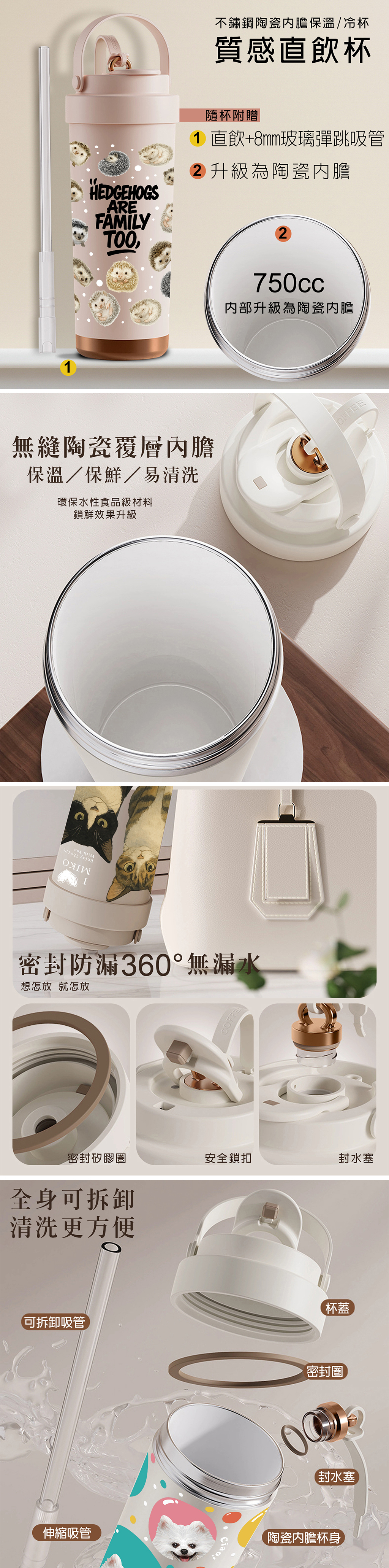 直飲/ 吸管杯 尺寸-主體高23CM 容量750ml 重量約370g