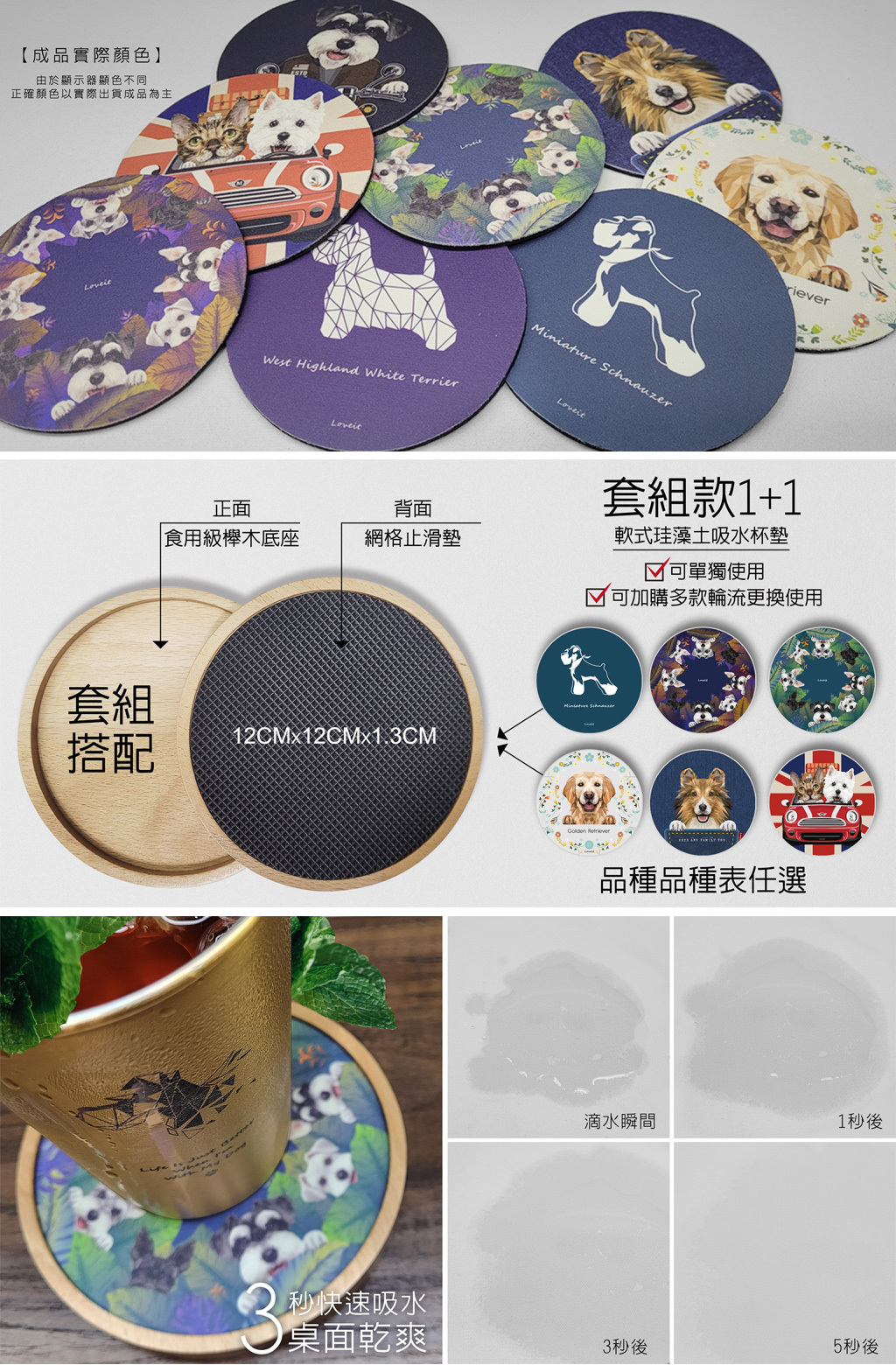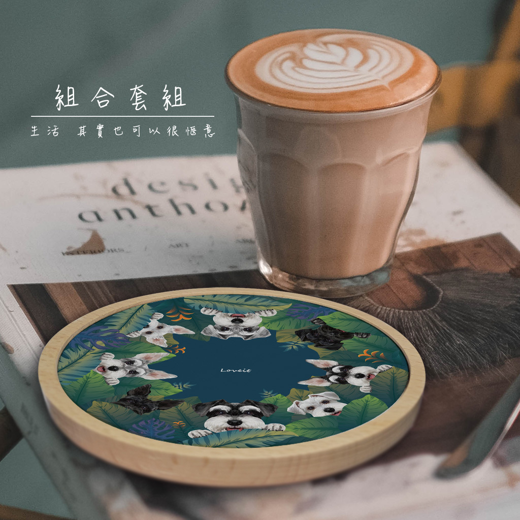 軟式珪藻土吸水 -綠色叢林套組<杯墊+櫸木底座>